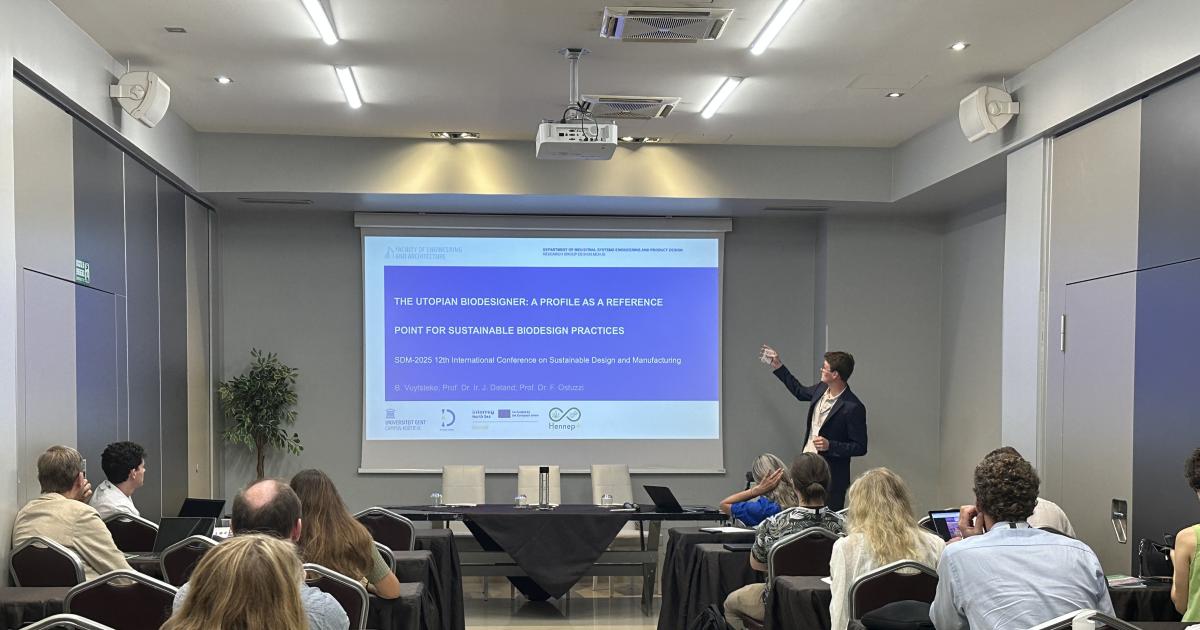 Researchers from Universtiy of Ghent; Bert Vuylsteke, Jan Detand and Francesca Ostuzzi presented the Utopian Biodesigner Profile at the 12th International Conference on Sustainable Design and Manufacturing (SDM2025). This international conference brings together researchers, practitioners, and industry experts to explore the latest developments in sustainable design, manufacturing, and circular innovation. The presented paper will be published in the official conference proceedings and possibly also in a book.