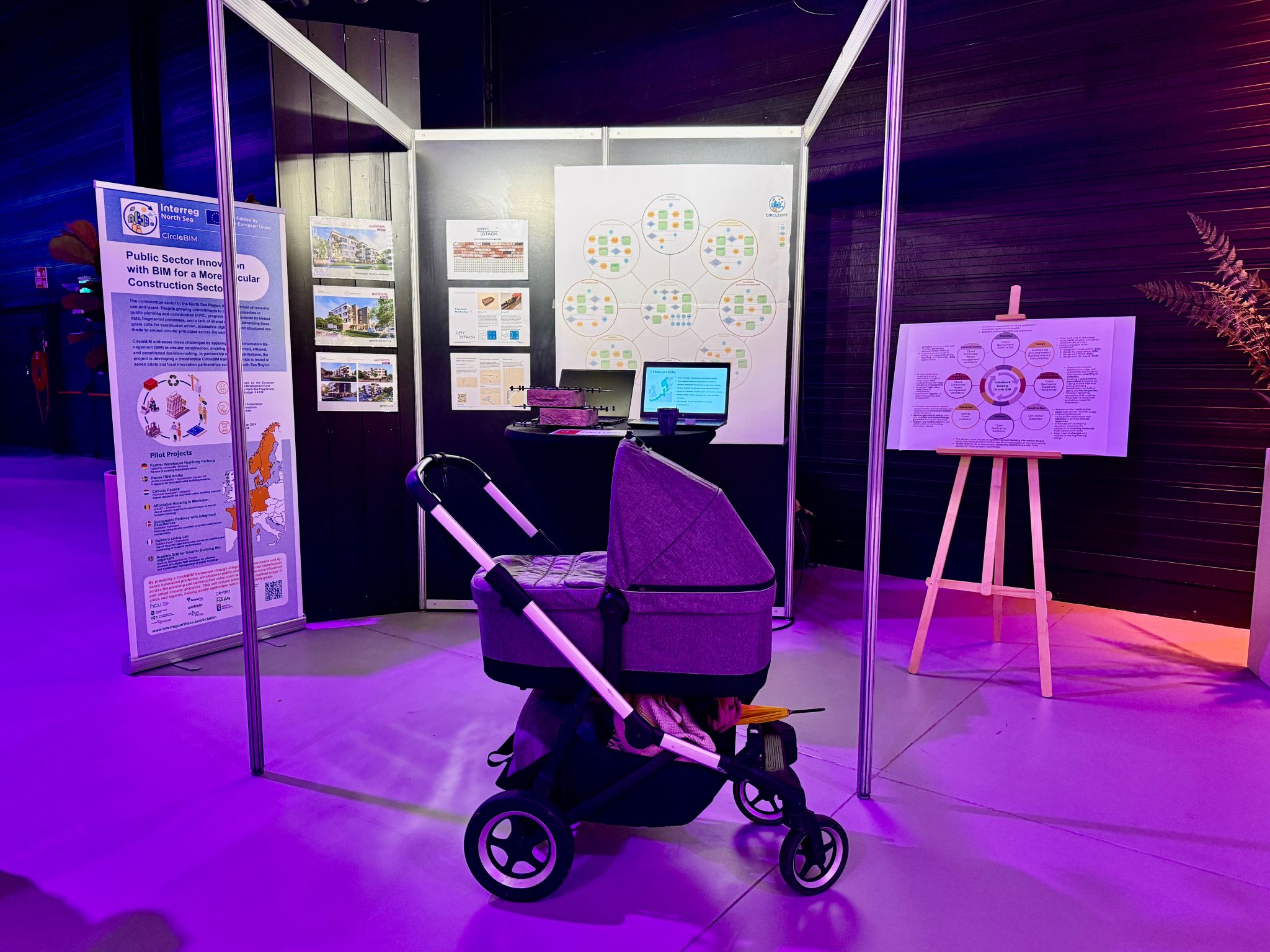 At the CircleBIM stand, visitors could explore the project’s BIM-based templates, process diagrams, and examples from the pilot initiative, all illustrating how clear data structures enable circular material flows and traceable, clean disassembly. A baby stroller placed at the stand symbolised the long-term impact of today’s construction choices and the importance of designing for future generations.