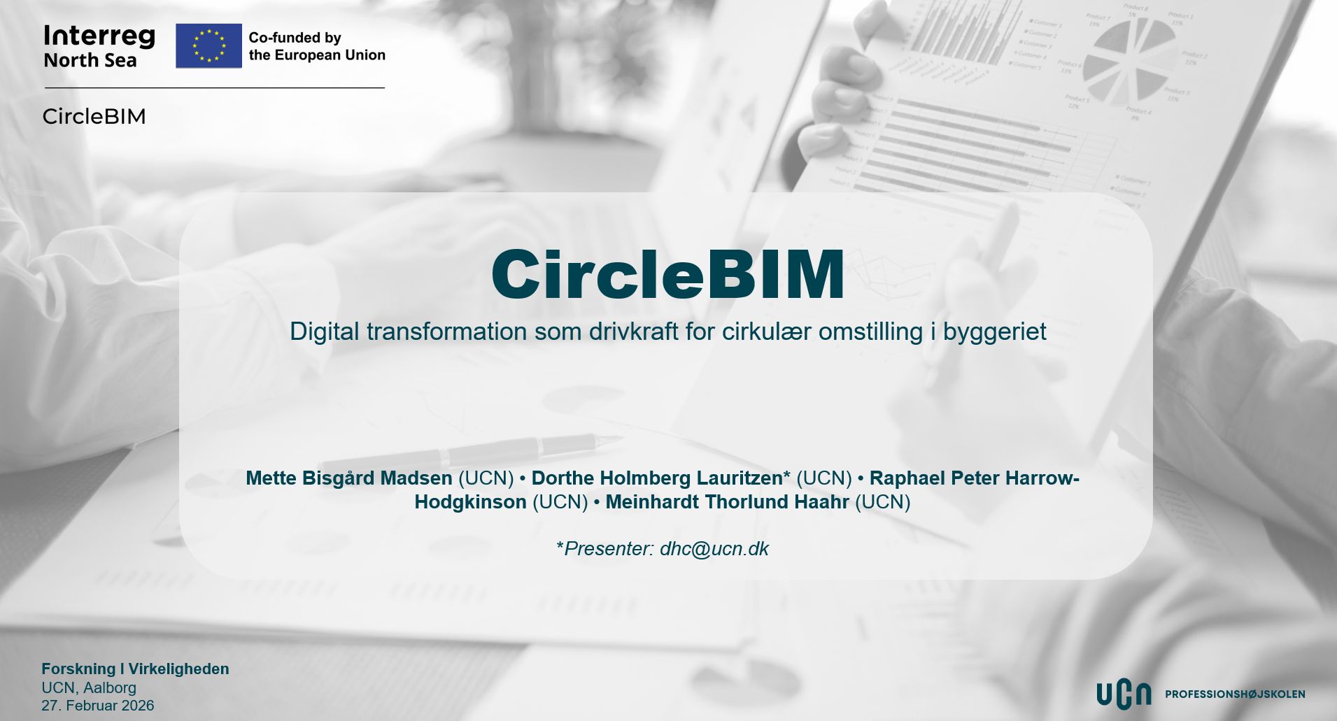 On 27 February 2026, the CircleBIM project was presented at the Forskning i Virkeligheden 2026 conference hosted by Professionshøjskolen UCN in Aalborg, Denmark. The event focused on the role of applied research in society and highlighted how collaboration between academia, education, and professional practice can generate real impact.
