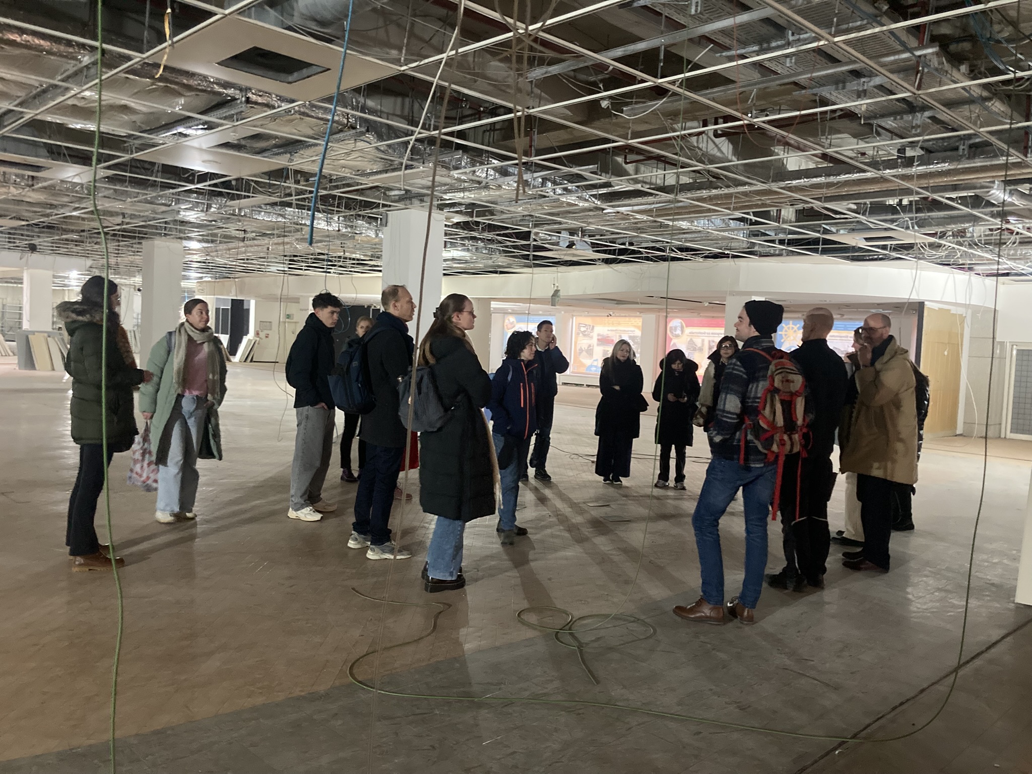 On 22 January 2026, the CircleBIM team hosted part of the KARMA project's interregional meeting. The morning began with a guided tour of the historic Karstadt building, led by Sprinkenhof AG, highlighting its ongoing transition and reuse potential. Participants then attended a short workshop at HafenCity University Hamburg (HCU), where the HCU team presented the CircleBIM framework and shared insights from the Hamburg pilot. Discussions focused on BIM-driven strategies for digital material tracking, reuse planning, and data-supported decision-making in public building projects.