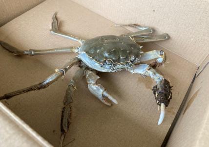Some crabs in the trap. (Photo: Heleen Keirsebelik)