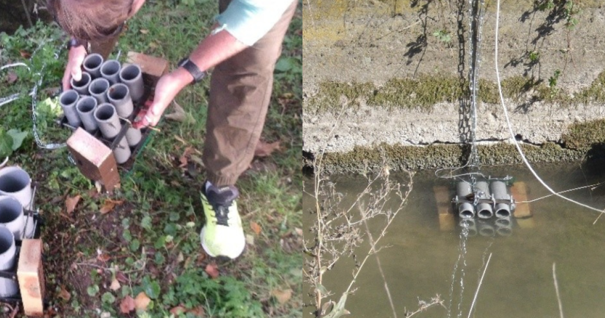 To enhance the effectiveness of monitoring, GEMEL and its partners decided to test a new trap system: the condo trap. These selective traps, made of PVC tubes, are designed to provide shelter for crabs and other crustaceans. Originally developed for capturing invasive crustaceans, particularly Chinese mitten crabs, in San Francisco Bay, the condo traps have shown promising results in Wales.