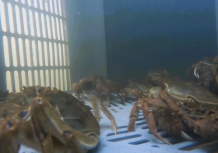 Some crabs in the trap. (Photo: Heleen Keirsebelik)