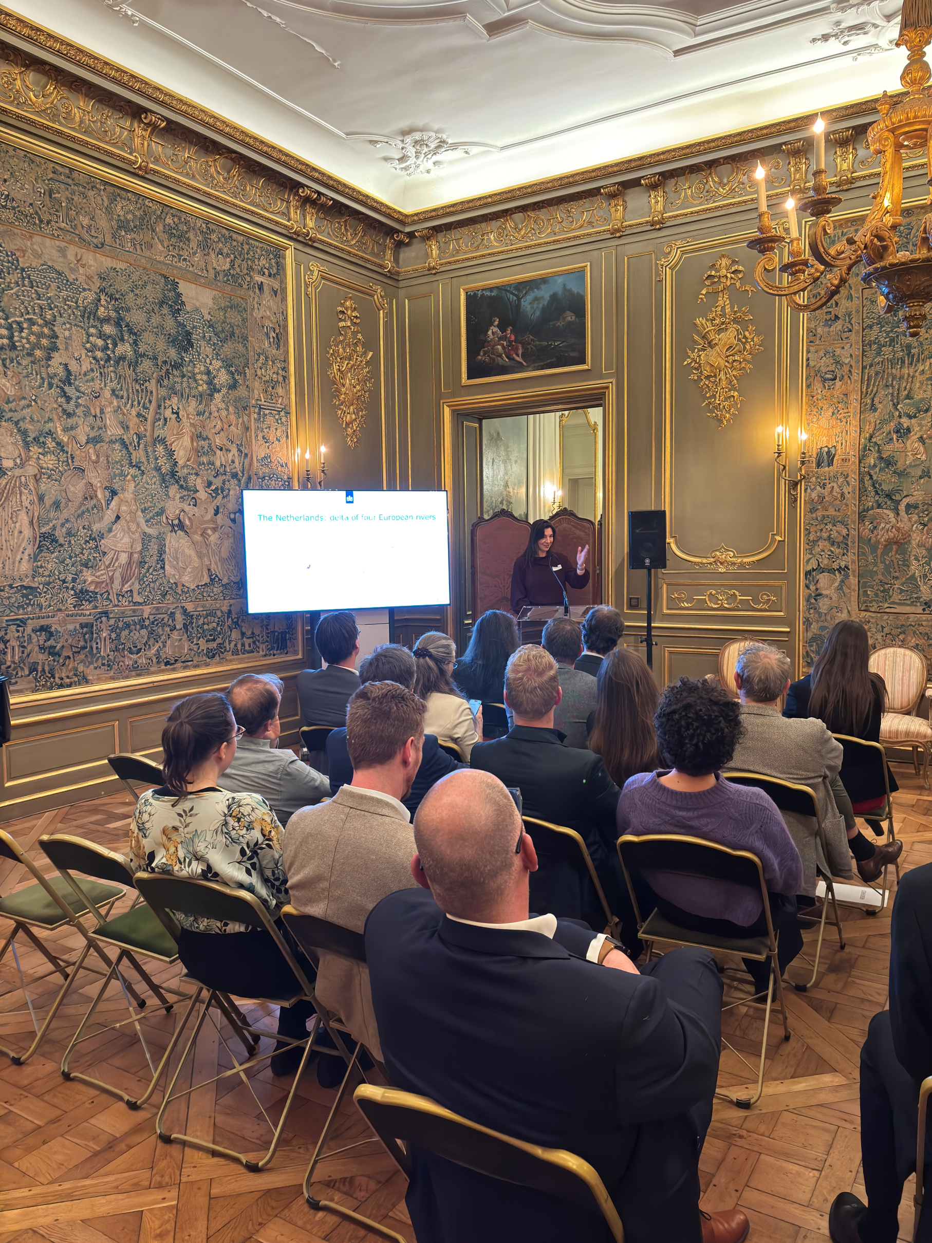 During the evening reception hosted by the Dutch Ambassador, H.E. Mr. Jan Versteeg, Marjolijn van de Zandschulp, Chief Engineer and Director of Rijkswaterstaat Oost-Nederland, emphasized the importance of cross-border cooperation in building resilient waterways across Europe. This message was reinforced during a roundtable discussion highlighting the need for strong partnerships across regions and disciplines.
