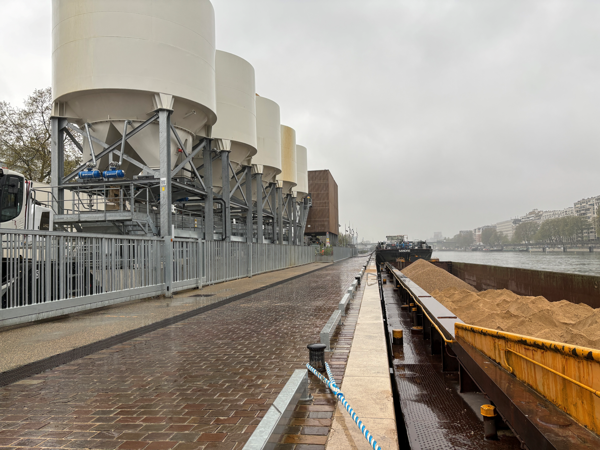 Another highlight was the visit to the Lafarge factory at “Port de Javel Bas”. This modern concrete factory produces ready-mix concrete at a central inner-city location on the Seine for local construction projects and uses the river for transporting materials. This example clearly demonstrates how using waterways for material transport can reduce urban truck traffic. At the same time, modern architecture and surrounding design have created added value for local residents. After operating hours, for example, the quay area is publicly accessible for walking, cycling, jogging, or simply spending time by the water.