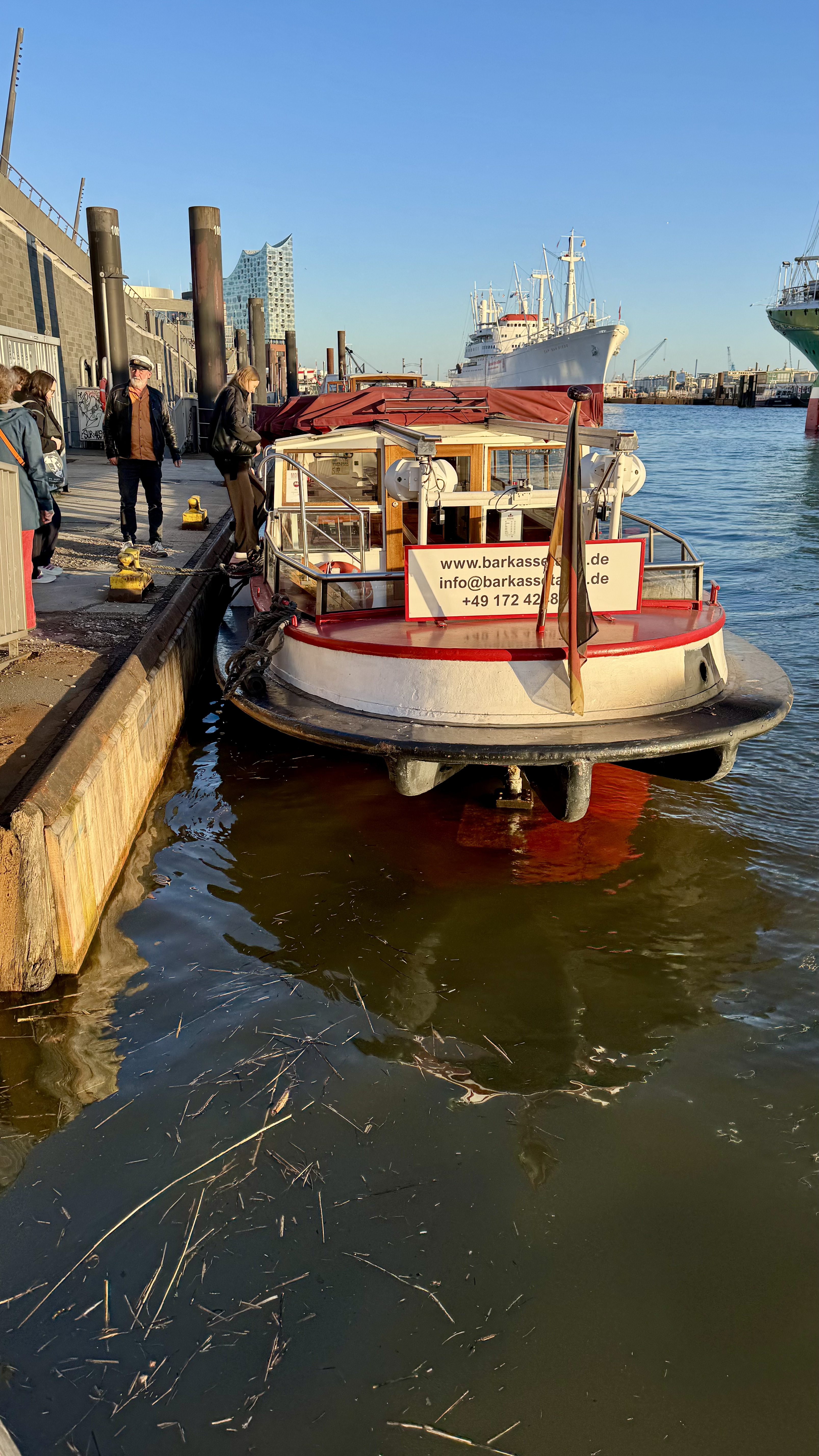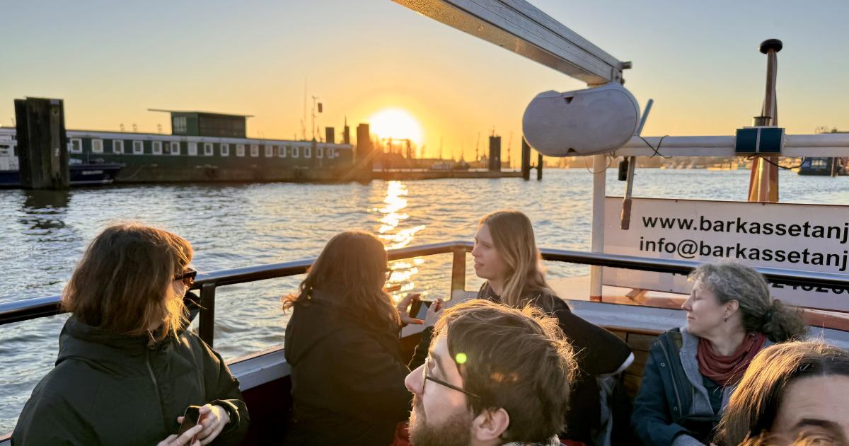 Besides the working sessions, the programme also allowed us to experience some of the local context. After the first day of meetings, we joined an alternative harbour tour through the port of Hamburg at sunset.