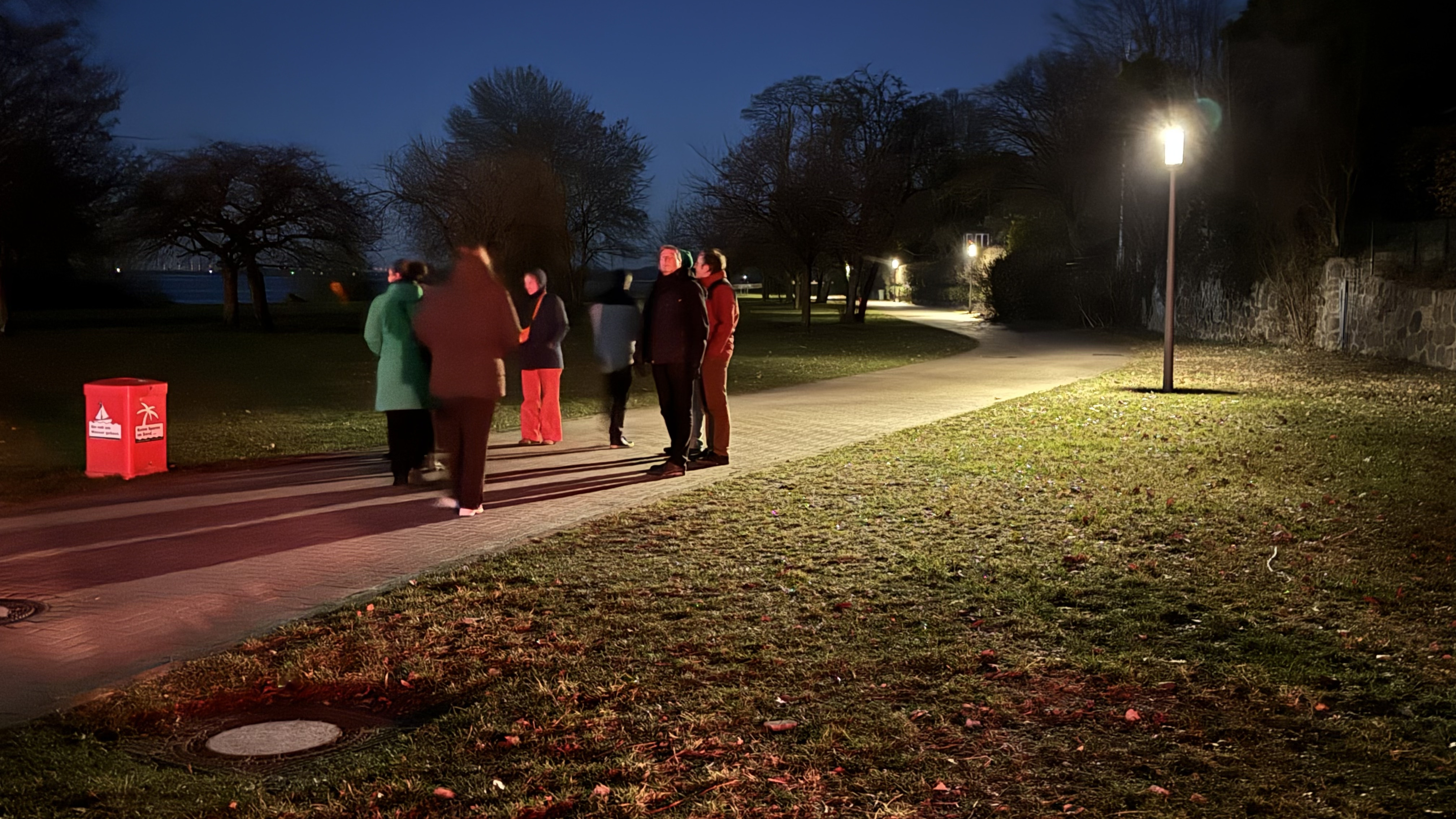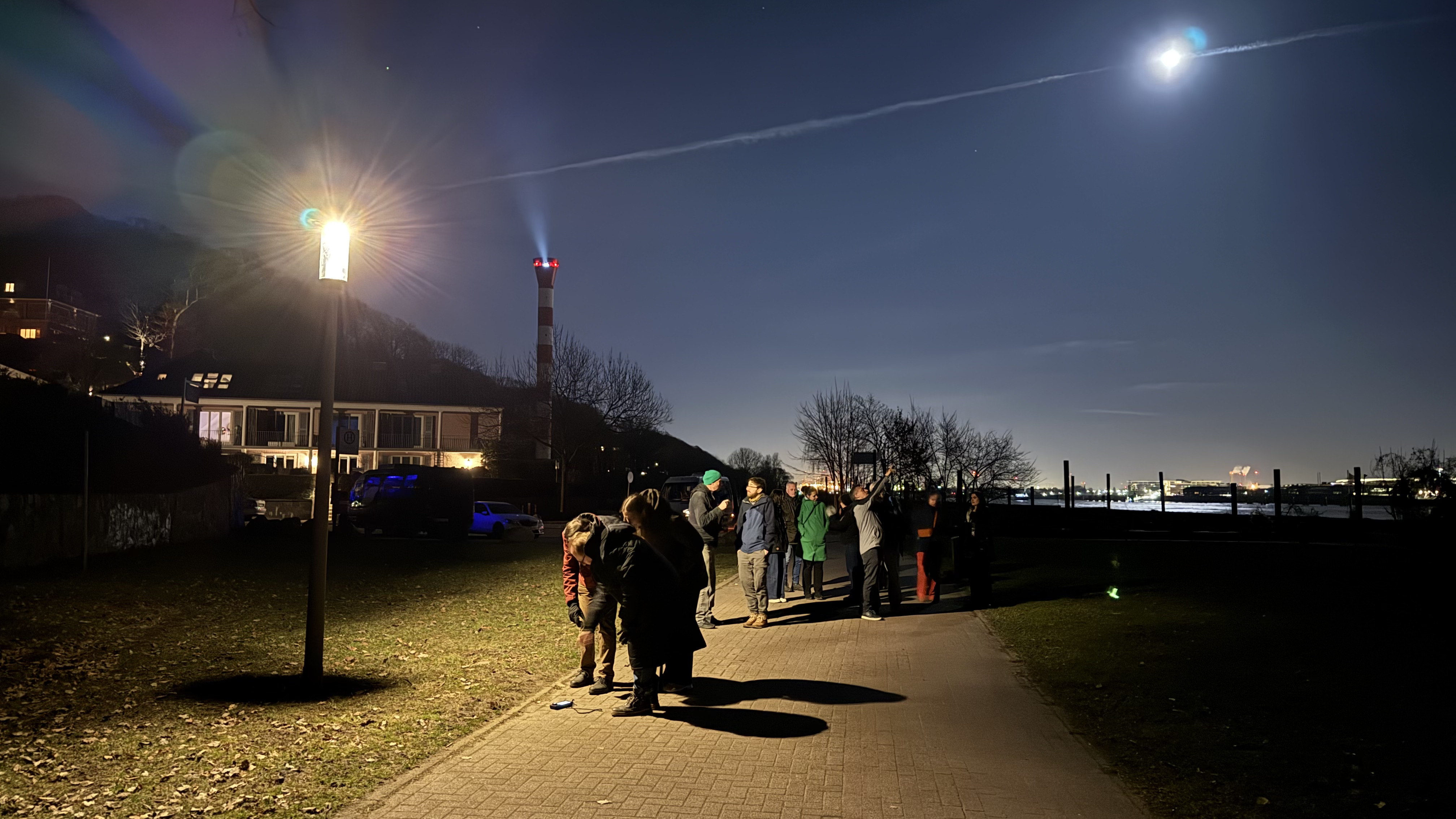 Later that evening we visited Hamburg’s two demonstrator sites: the Elbe Hike & Bike Trail along the Elbe River and Bullnwisch, a street on the outskirts of the city. At both sites the lighting has been modified as part of the project. DARKER SKY helped initiate the renewal of these lighting installations and opened a wider dialogue on light pollution with local and regional stakeholders. The work combined technical infrastructure changes with awareness-raising and participatory planning formats. Hamburg University of Applied Sciences introduced the use of Extended Reality (XR) tools in planning and discussion processes, while the Altona district administration strengthened cooperation with the municipal lighting operator Hamburg Verkehrsanlagen.