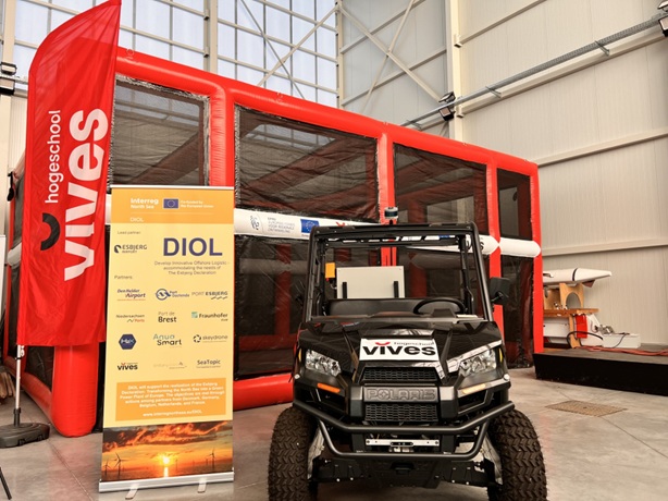 As part of Work Package 2 – Sustainable Solutions in Logistics Hubs, DIOL is testing innovative technologies to enhance services for existing offshore wind farms and energy islands. This includes improving surveillance of energy infrastructure and perimeters in relevant ports and airports.Specifically, DIOL is preparing the groundwork for introducing, piloting, and validating the use of drones, ground robots, and AI-based technologies for security, monitoring, and maintenance of offshore renewable energy installations and connected logistics hubs. The VIVES Drone Applications Research Group, based at Drone Dock near Ostend-Bruges International Airport, was the logical choice for executing this pilot. VIVES brings extensive expertise in operating autonomous aerial and ground systems.