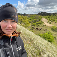 Dr. Karin Amsten is a research coordinator at Foundation Nordens Ark, handling and coordinating both Nordens Ark´s own research, such as natural processes in open landscapes and the origin and ecology of the Nordic brown bee, as well as coordinating research collaborations, both nationally and internationally. Her own research focuses on the effect of herbivores and fire in temperate open habitats. She earned her PhD in December 2023 from the Swedish University of Agricultural Sciences (SLU), focusing on the roles of large herbivore grazing and fire in shaping open ecosystems.