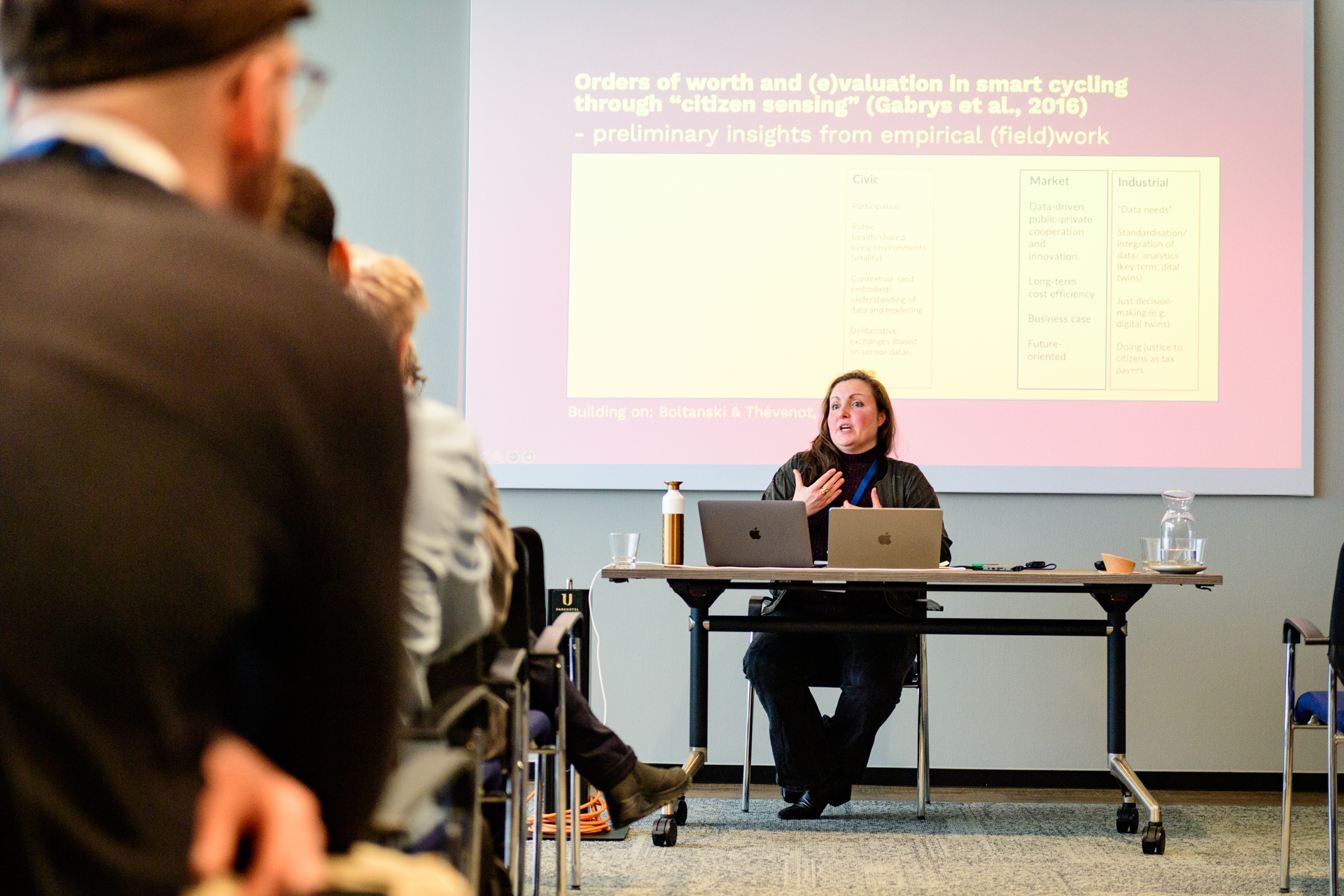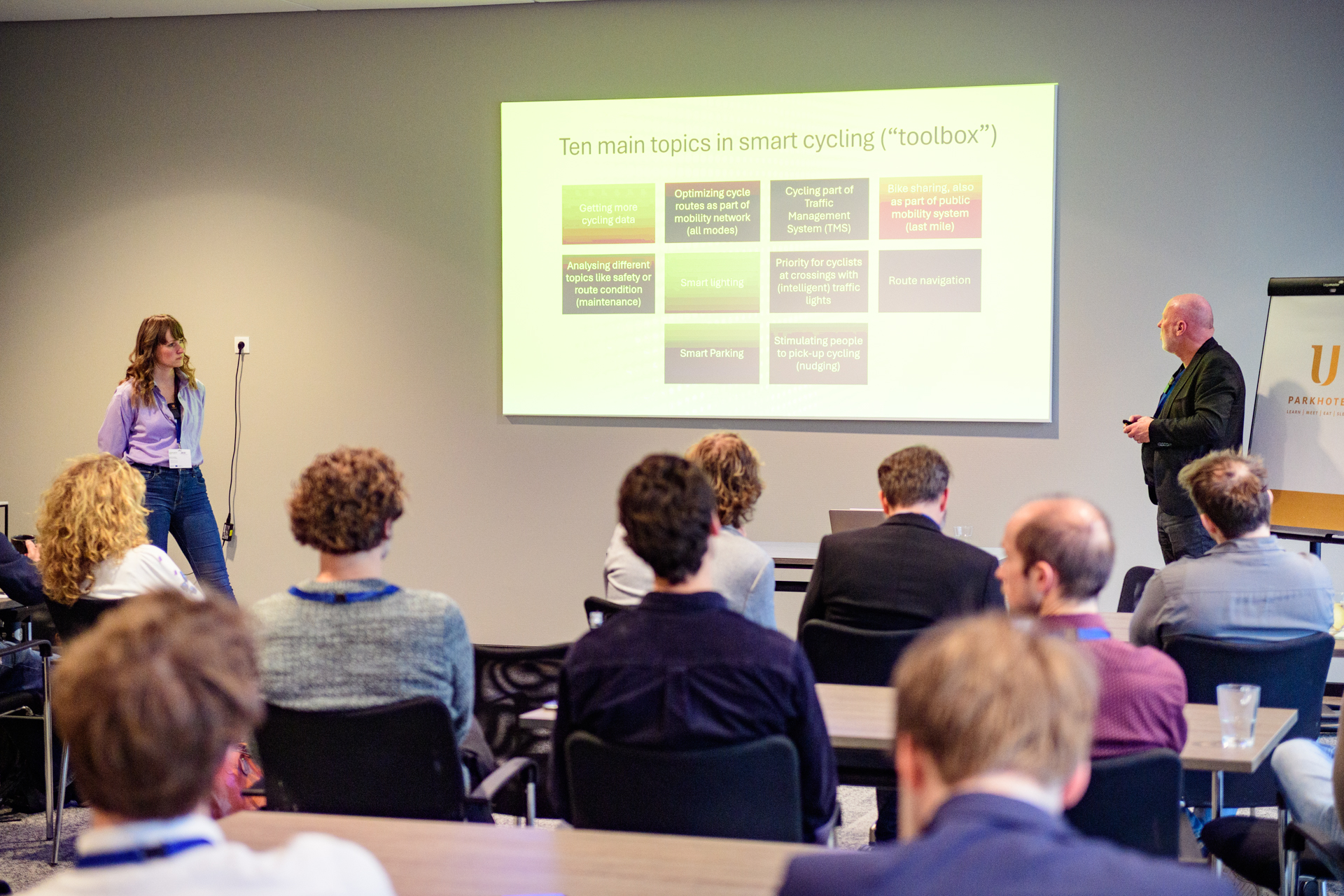 The keynote speaker Frauke Behrendt (Associate Professor in Transitions to Sustainable Mobility at the Technology, Innovation and Society Group at the Eindhoven University of Technology) addressed the societal impacts of cycling technologies, alongside current challenges and remaining work. Topics included AI, delivery systems, data justice and more.