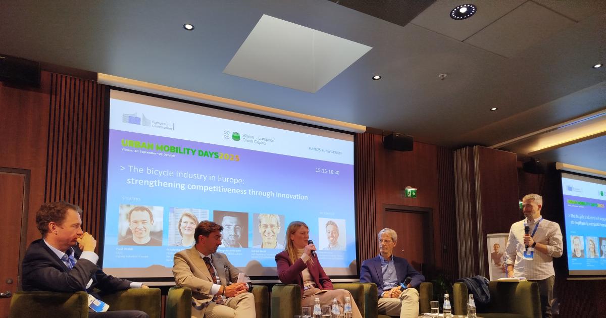 At Urban Mobility Days 2025 in Vilnius Paul Walsh, CEO of Cycling Industries Europe, and Ronald Jorna, project manager of the MegaBITS project, shared their view on how innovation can make Europe’s bicycle industry stronger, more resilient and competitive. Other panellist were Friederike Pischnick, Political Affairs and Government Relations, Bosch GmbH and Koen Tengrootenhuysen, Director Public Affairs Europe, Decathlon.
