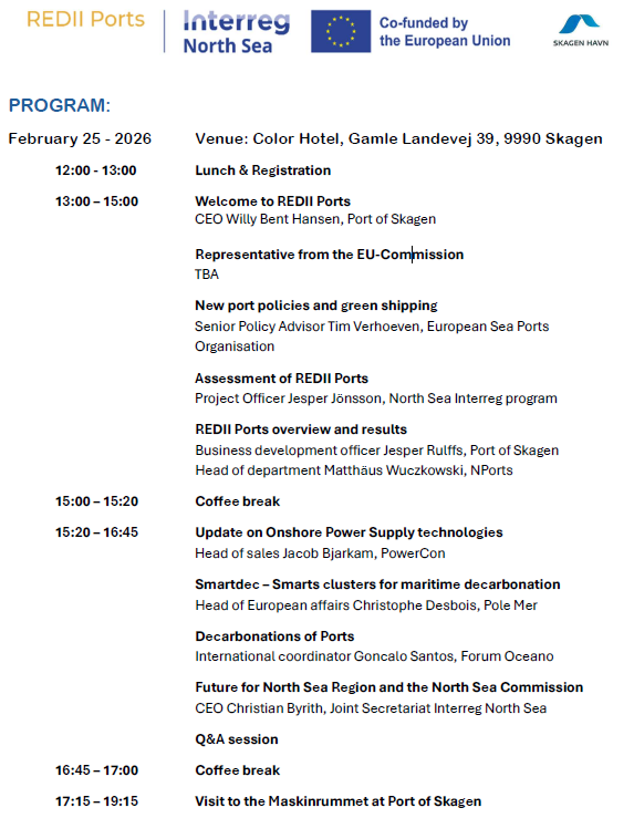 Decarbonization of shipping and ports is a major challenge and opportunity for all the operators in the maritime world. Both the IMO and the EU have imposed strategies and regulations to reduce the level of Greenhouse Gases in the maritime sector. These measures have a major impact on both port and vessel operations. But every port is different; every vessel is different; every ship engine is different. There are no standard or uniform solutions that fit all! In the REDII Ports project 6 ports, 2 maritime regions managing approx. 40 ports, four Small-Medium sized Enterprises, three knowledge and research centers have been together in a 3,5 year cooperation developing, testing and installing 17 systems that contribute to the reduction of carbon emissions. Do you want to know more about the outcome of the RED II ports project?