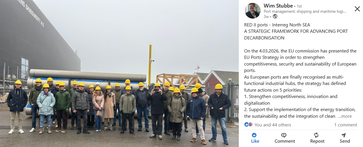 Nevertheless, the RED II ports have not been waiting for the wind of Brussels to set the sails, insofar decarbonisation of ports and shipping is concerned. Over the past 3,5 years, the partner ports have collaborated intensively to design and test their pilot projects. Based on their experiences, they have developed their own strategic framework to effectively implement decarbonisation in ports and on shipping. While ports play a central role in this process, progress depends on how responsibilities, risks and timelines are shared across the wider system, including market actors, stakeholders, authorities and policy-makers: