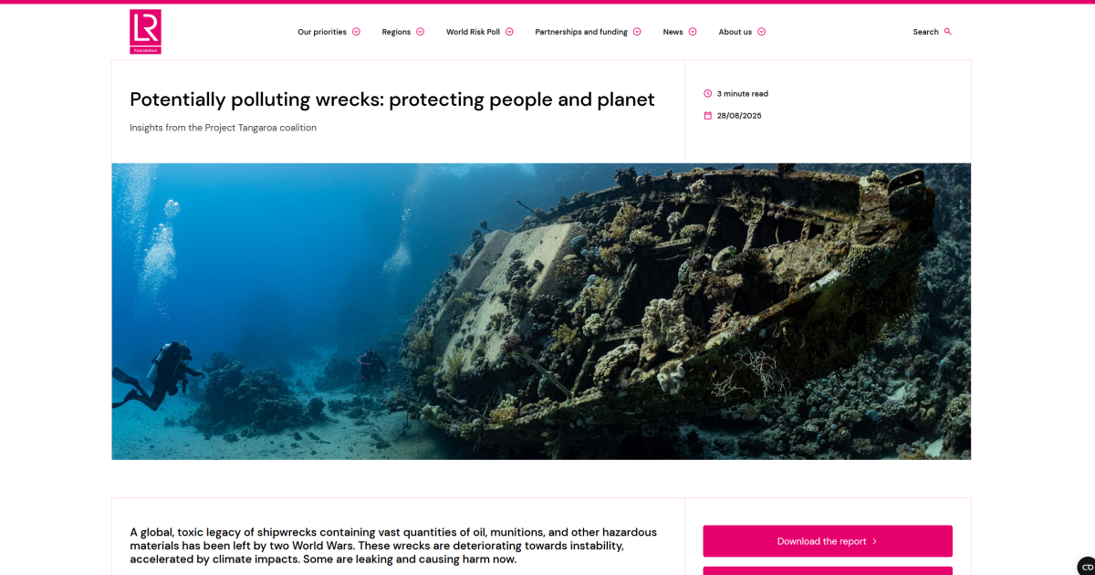 For more information, head over to the Lloyd’s Register Foundation website. And don’t miss their report “Potentially Polluting Wrecks: Protecting People and Planet,” which provides an in-depth look at the challenges and current state of shipwreck-related pollution