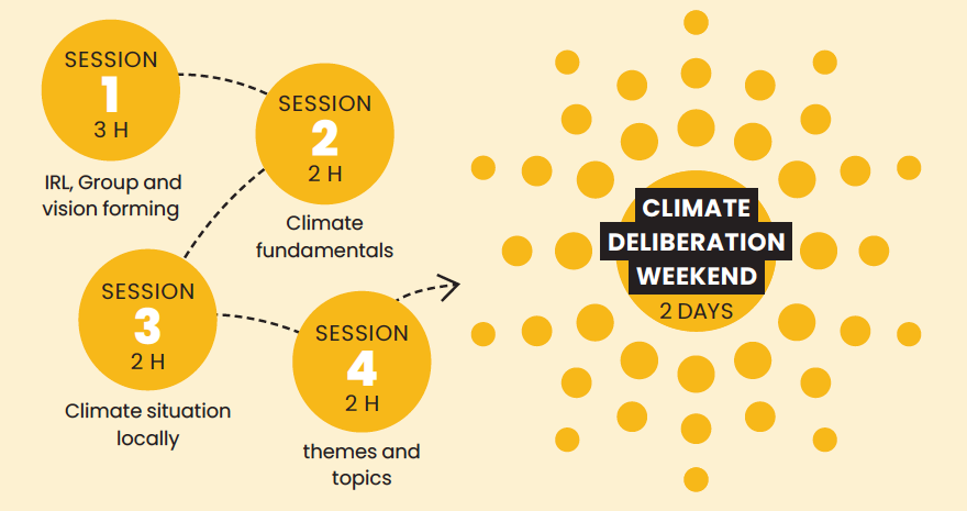 The full process consisted of four preparatory educational sessions, followed by the deliberation weekend. Each session had to be meaningful, focused, and goal-oriented.